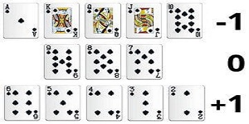 Ορίστε αξία στις κάρτες: Με βάση το πιο δημοφιλές σύστημα μέτρησης καρτών, το Hi-Lo κάθε κάρτα έχει μία αξία. Από 2 ως 6 μετράει για +1. Από 7 ως 9 για 0. Από το 10 ως τον Α οι κάρτες υπολογίζονται ως -1. Κάνοντας τις πράξεις, κάθε φορά που πέφτει μία κάρτα, όσο μεγαλύτερο είναι το άθροισμα, τόσο σημαίνει ότι οι μεγάλες κάρτες είναι στο παιχνίδι κι οι πιθανότητες για τον παίκτη είναι αρκετές. Αν το άθροισμα έχει αρνητικό πρόσημο, τότε σημαίνει ότι οι μεγάλες κάρτες έχουν πέσει στο τραπέζι και δεν υπάρχουν μεγάλες πιθανότητες νίκης.