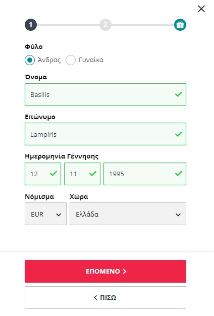 2ο ΒΗΜΑ - Συμπληρώστε την φόρμα στοιχείων