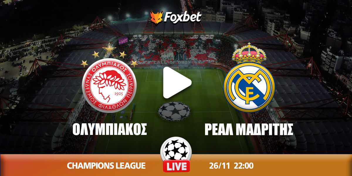 Δείτε που μπορείτε να παρακολουθήσετε την αναμέτρηση του Ολυμπιακού με τη Ρεάλ Μαδρίτης (22:00), στο πλαίσιο της 5ης αγωνιστικής των προγνωστικών Champions League.