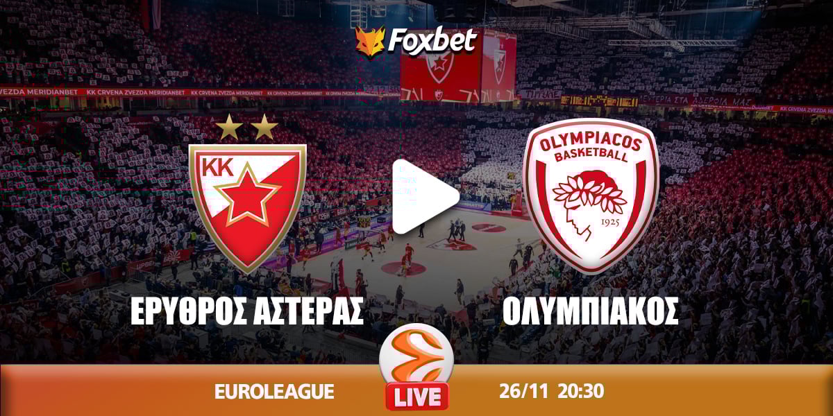 Δείτε το κανάλι μετάδοσης του αγώνα του Ολυμπιακού με τον Ερυθρό Αστέρα (20:30) στο Βελιγράδι, για τη 13η αγωνιστική των προγνωστικών Euroleague.