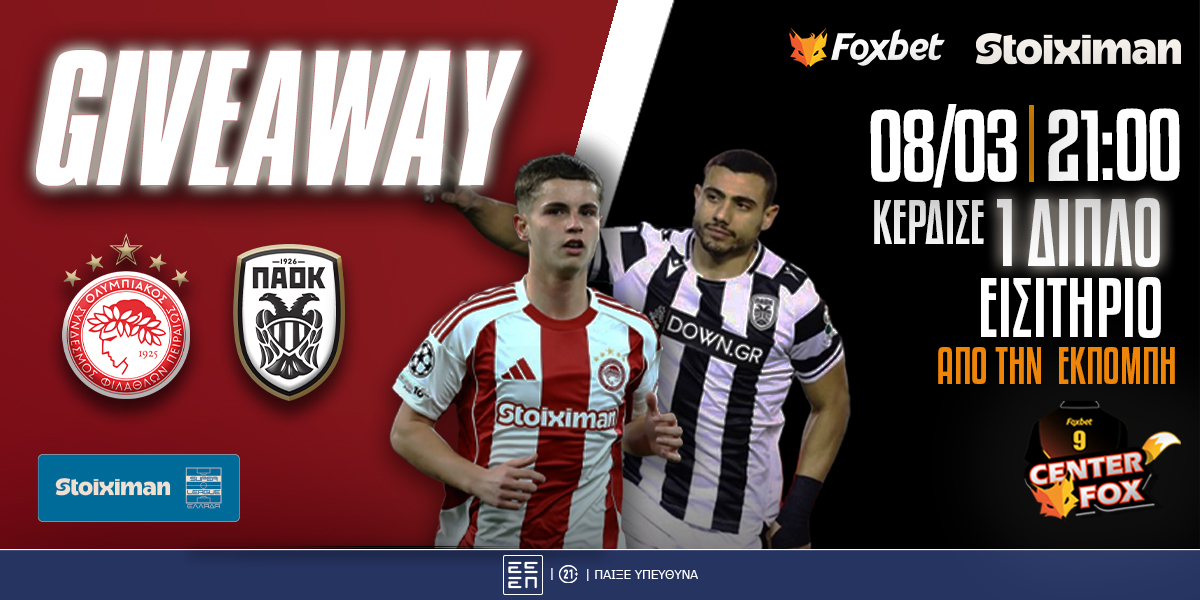 Προσφορά της stoiximan, Μεγάλου Χορηγού του Ελληνικού Πρωταθλήματος Ποδοσφαίρου.