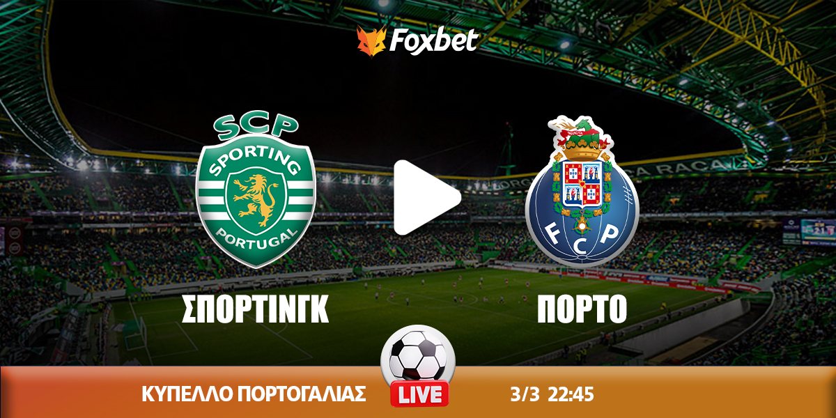 Το ντέρμπι για το Κύπελλο Πορτογαλίας δεν έχει τηλεοπτική μετάδοση στην Ελλάδα, όμως έχετε τη δυνατότητα να το απολαύσετε μέσω Live Streaming* από τη στοιχηματική εταιρεία της επιλογής σας.