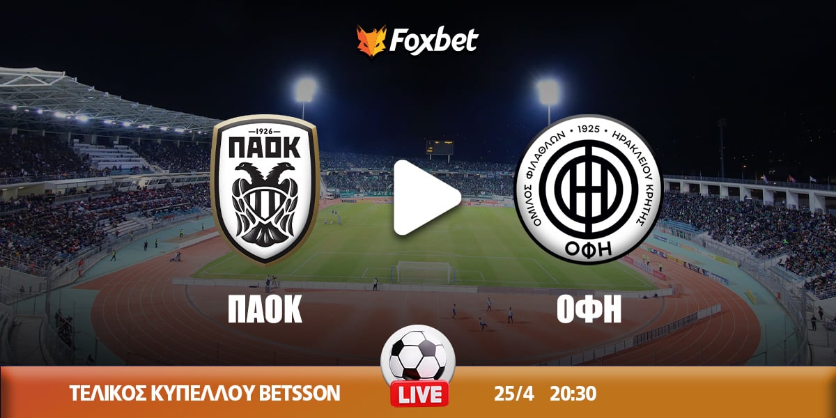 Πόσο γρήγορα περνάει η σεζόν. Φτάσαμε αισίως στον μεγάλο τελικό Κυπέλλου Ελλάδος Betsson. ΠΑΟΚ και ΟΦΗ σε μία ολοκληρωτικά «ασπρόμαυρη» συνάντηση στον Βόλο (20:30), με έπαθλο την κούπα της δεύτερης τη τάξει διοργάνωσης της Ελλάδας.
