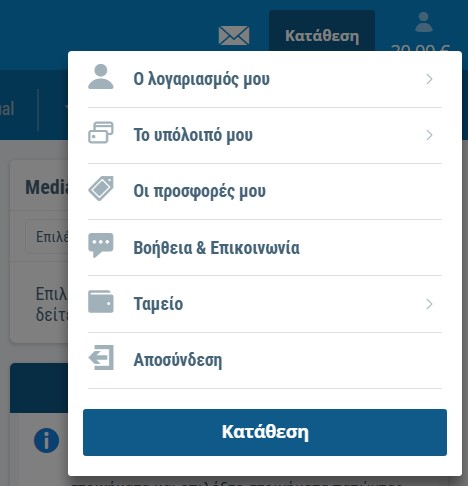 Βήμα 3: Στο εικονίδιο του λογαριασμού σου («ανθρωπάκι») θα βρεις την επιλογή «Κατάθεση».